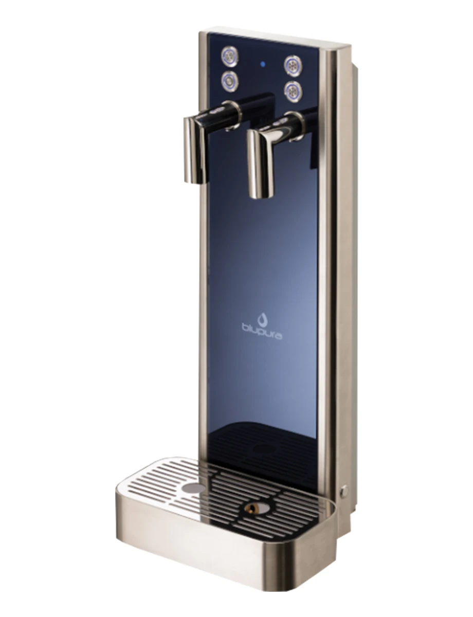 Bluglass Tower può erogare fino a 4 tipologie d'acqua: fredda liscia, a temperatura ambiente, calda e anche acqua gassata.